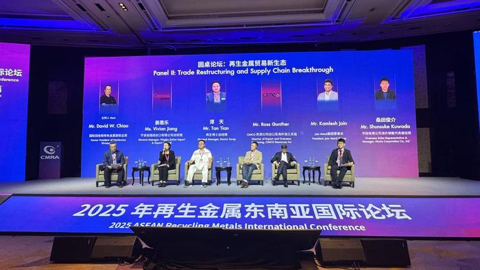 2025年再生金屬東南亞國際論壇會場。中國有色金屬工業協會供圖2025年再生金屬東南亞國際論壇以“聚綠色金屬 鑄東盟新篇”為主題,與會專家圍繞產業政策和市場動態、產業布局動向、投資策略、貿易挑戰及應對措施等議題展開討論與交流。中國駐泰國大使館、泰國政府有關部門、中國有色金屬工業協會相關部門、上海期貨交易所等有關領導及負責人出席論壇并致辭。中國有色金屬工業協會再生有色金屬部副主任、再生金屬分會常務副秘書長李世恩主持論壇開幕式。